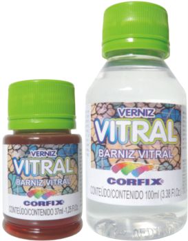 Barniz de acabado transparente y brillante en base disolvente, desarrollado principalmente para el pintado decorativo de vidrio, especialmente vidrieras y espejos. Tiene 29 colores transparentes y brillantes, mezclables entre sí. Los colores Blanco y Base Nácar son semitransparentes. El Barniz Vitral Incoloro sirve para dar más transparencia a otros colores y también puede usarse como un excelente barniz de acabado en piezas artesanales, como jabones, madera, cerámica y piezas de yeso. Soluble en disolvente Corfix. El Barniz Vitral Madrepearla Base presenta una